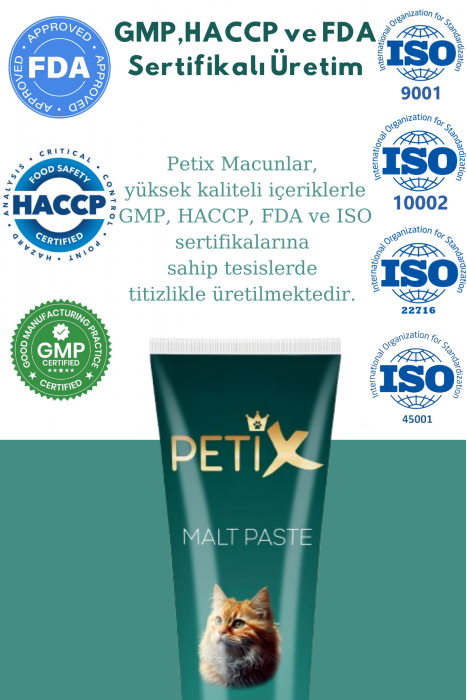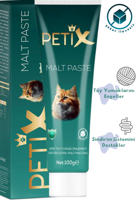 Kedilerinizin sağlıklı ve mutlu kalmasını sağlamak için en doğal çözüm burada: Petix Malt Paste. Tüy yumağı sorununu doğal yollarla çözen bu macun, kedinizin yuttuğu tüyleri kolayca sindirmesine ve vücuttan atmasına yardımcı olur. Aynı zamanda kedinizin tüylerinin sağlıklı ve parlak görünmesini sağlar.